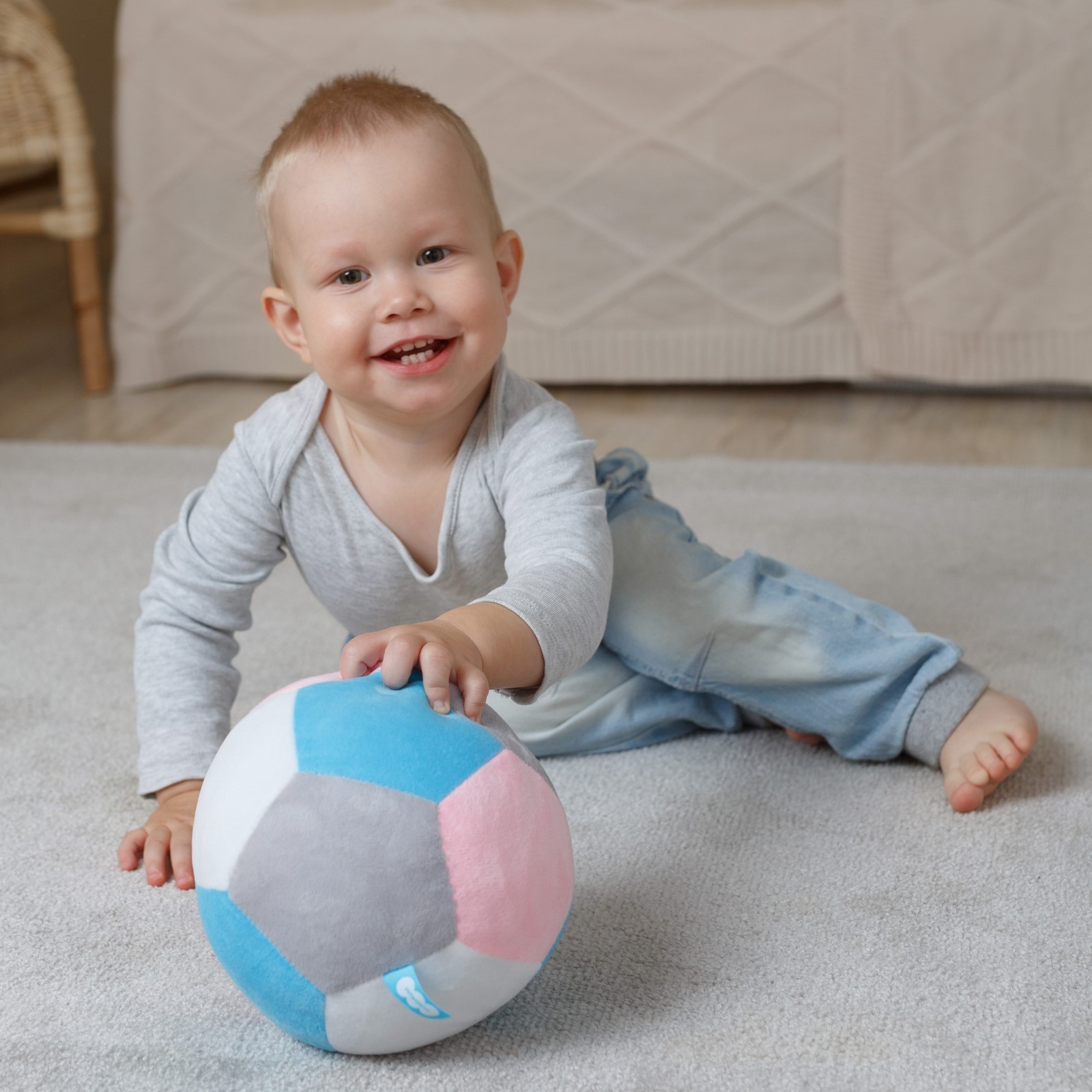 Игры и радость детей: малыш с мячом