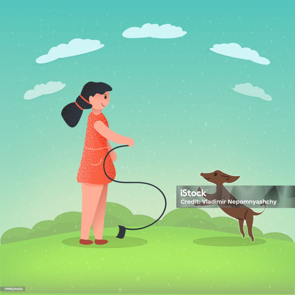 Иллюстрации прогулки с собакой в векторном стиле
