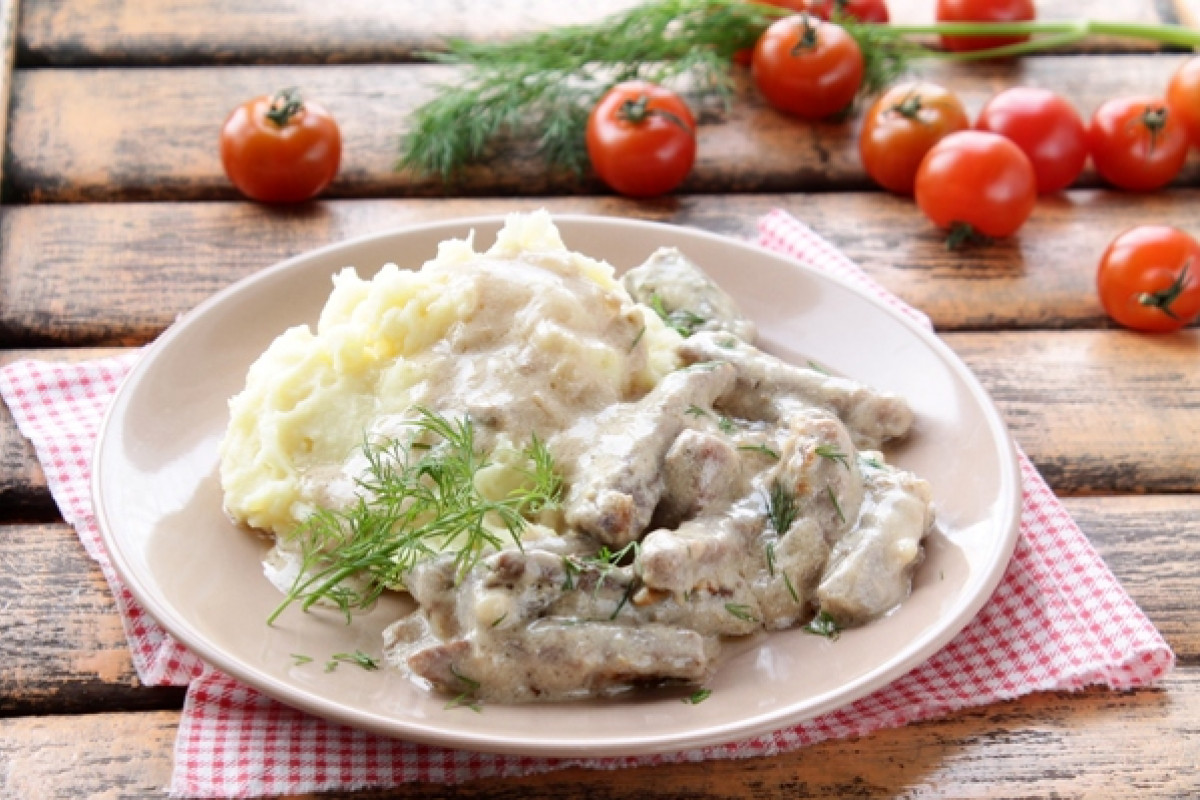 Вкусные рецепты: Бефстроганов с курицей и картофельное пюре