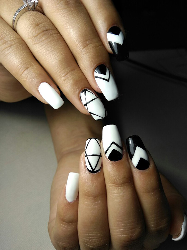 Модные черно-белые дизайны ногтей в квадратной форме