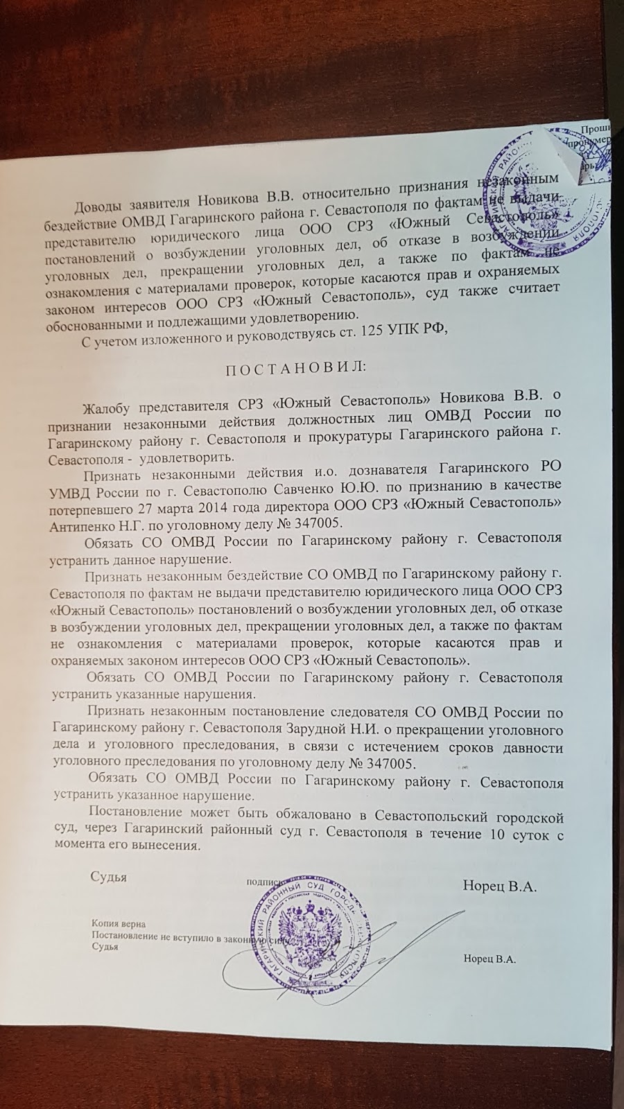 Информация о решениях судов в Москве