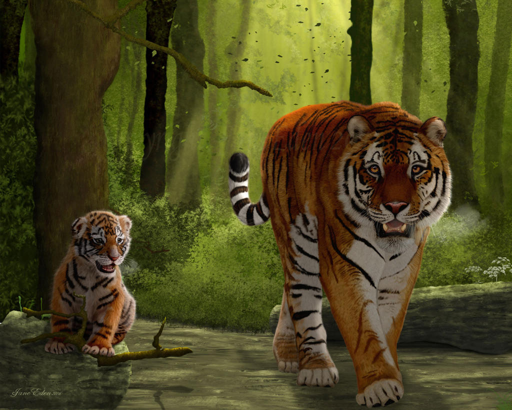 Тигры в движении: Мать и детеныш в природе